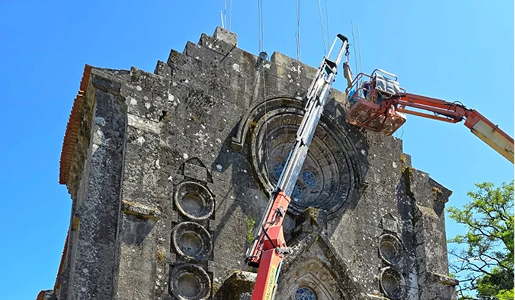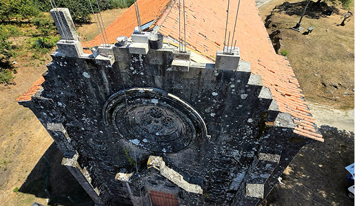 Por encargo de la Asociación de la Comisión de Santa María de Caritel, llevamos a cabo las obras de reparación de la espadaña de la iglesia parroquial. Tras una fase previa de reconstrucción y restauración estructural, en el momento de la colocación —y debido a la complejidad de la intervención— contamos con la colaboración de la empresa GRANIVER, especialistas en la elaboración de piezas artesanales en piedra.